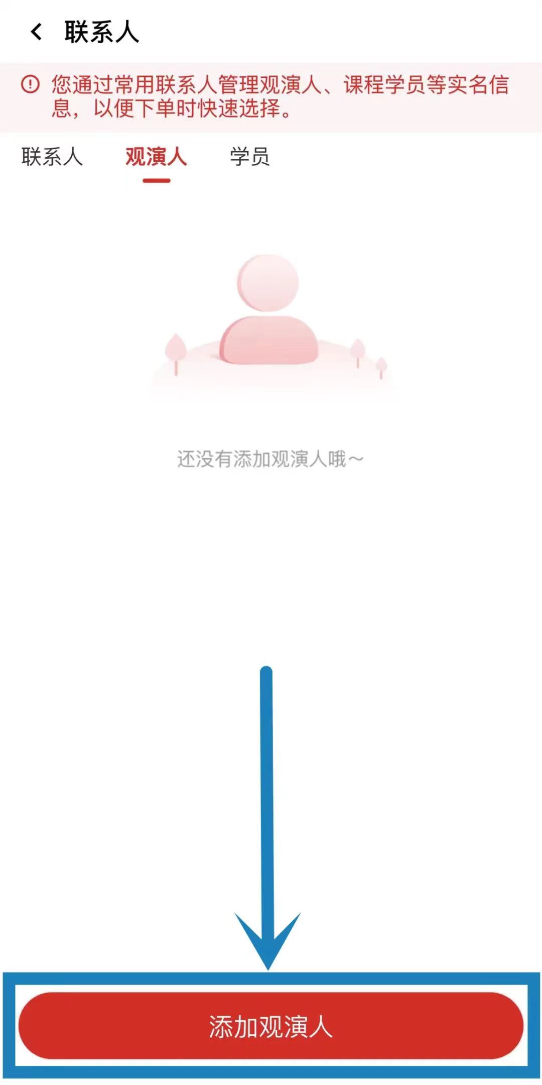 進入後務必完成注冊,點擊“我的(de)-聯系人(rén)”,選擇“觀演人(rén)”,提前添加觀演人(rén)信息,這(zhè)樣在開票(piào)後才能第一時(shí)間搶到心儀座位哦圖片
